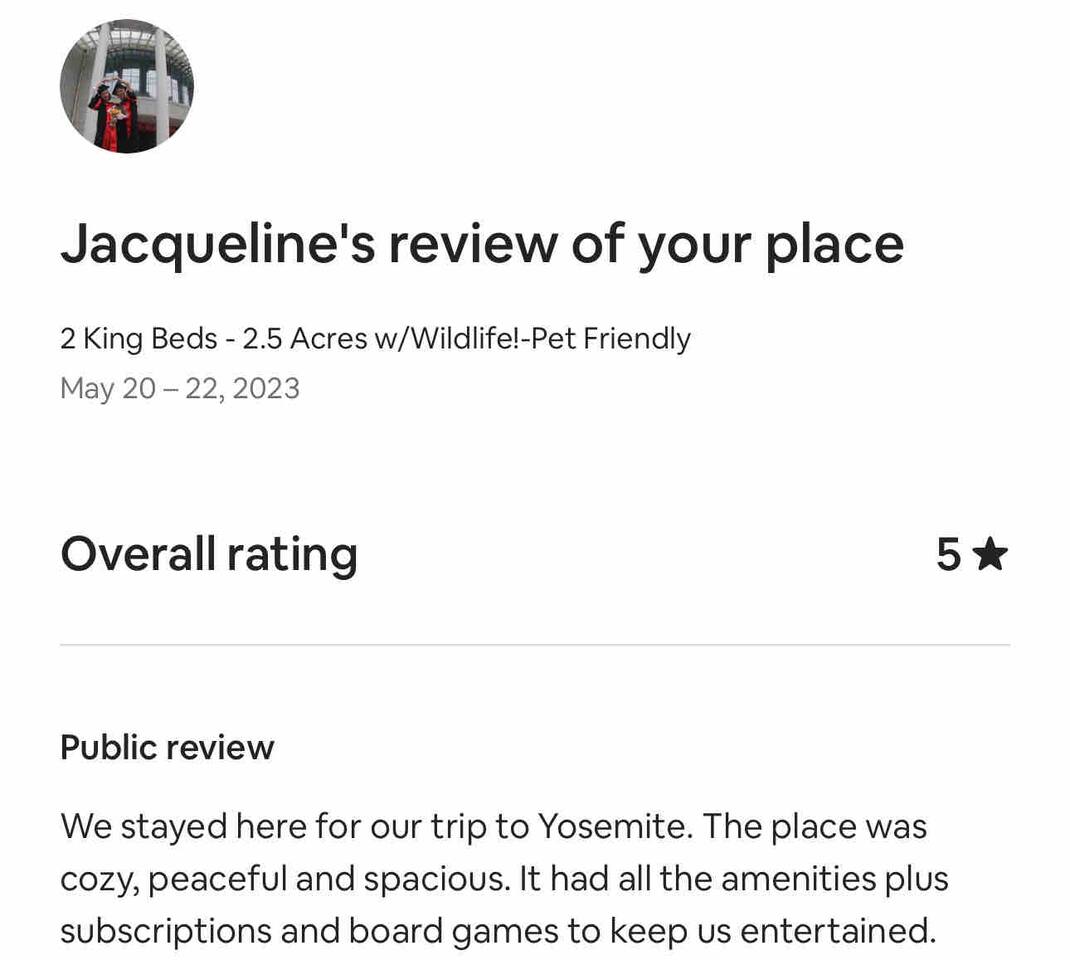 You will enjoy a top-rated vacation property in Oakhurst California is situated on almost 3 acres of land, offering plenty of space for you and your loved ones to hang out and enjoy the beautiful surroundings. Our four-bedroom, three-bath house is the perfect spot for a relaxing getaway, complete with wild turkeys roaming through the yard, and an abundance of birds and other wildlife. If you're looking for a peaceful environment to escape the hustle and bustle of everyday life, you've found it!